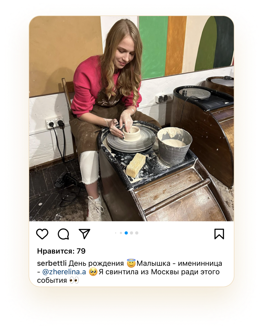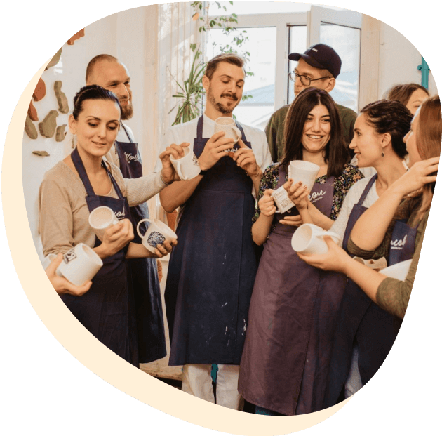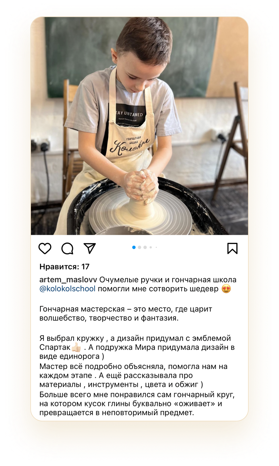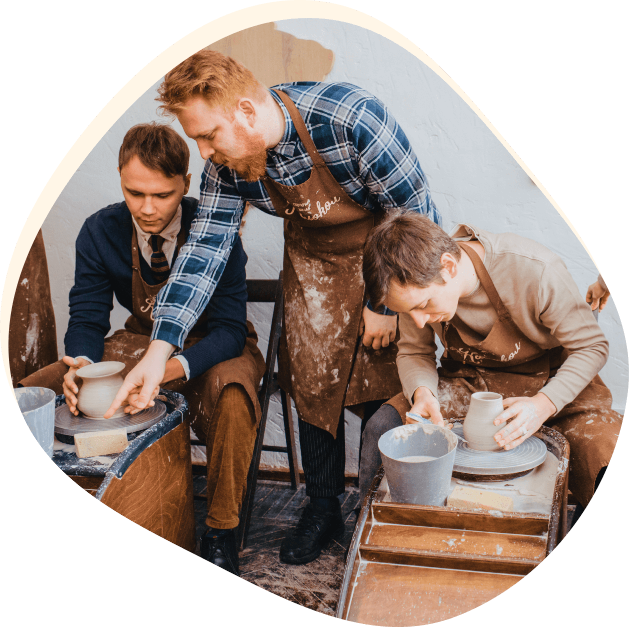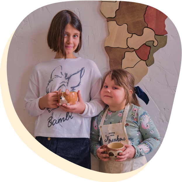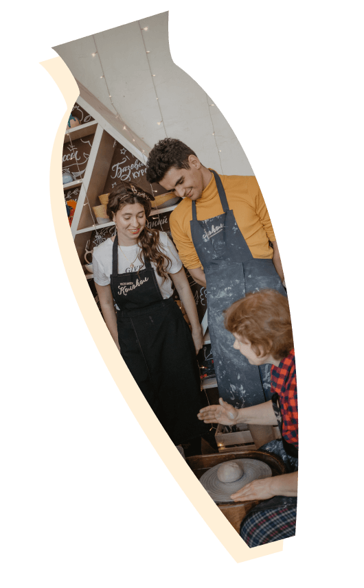 Создаёте все вместе кружки, тарелки или другие формы на гончарном круге или лепкой. Мастер уделяет внимание каждому.
