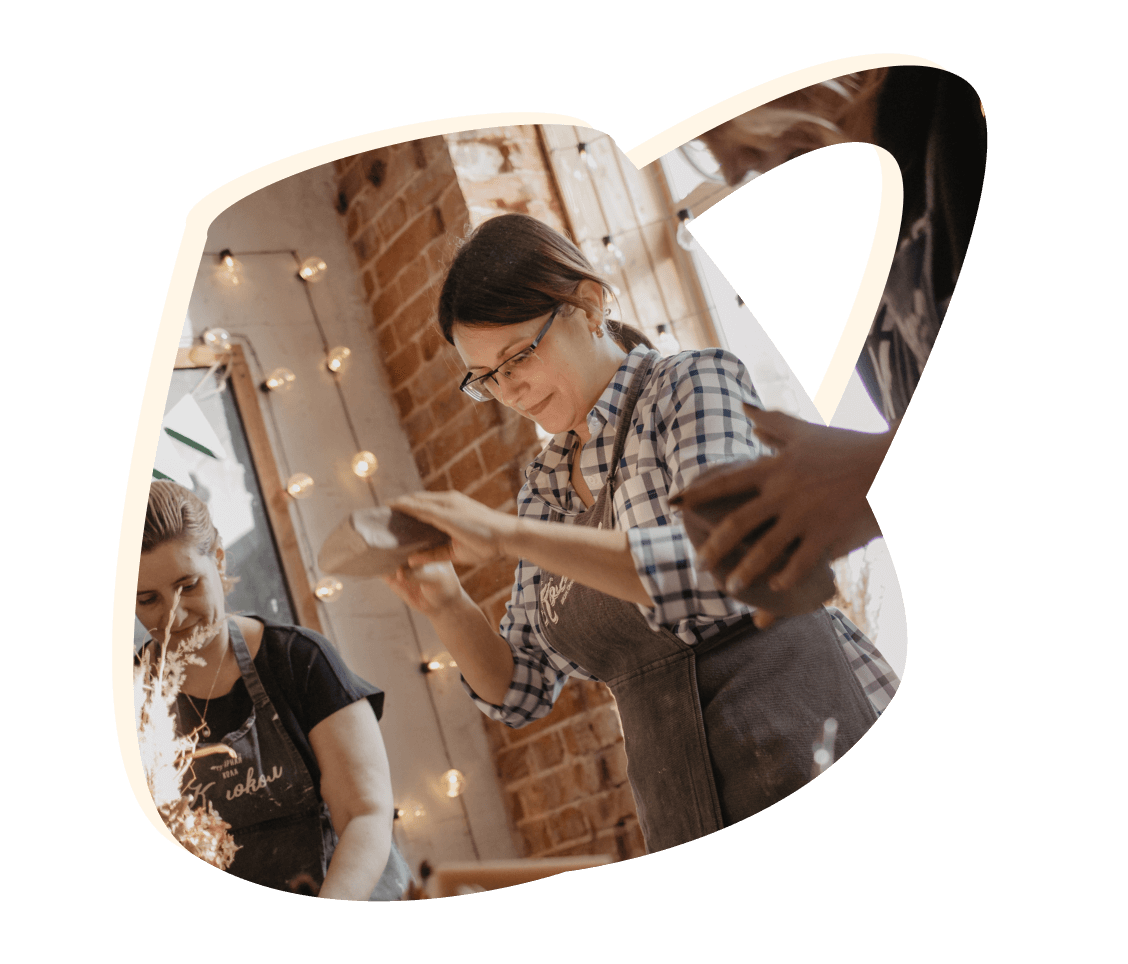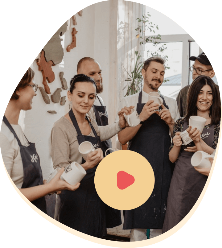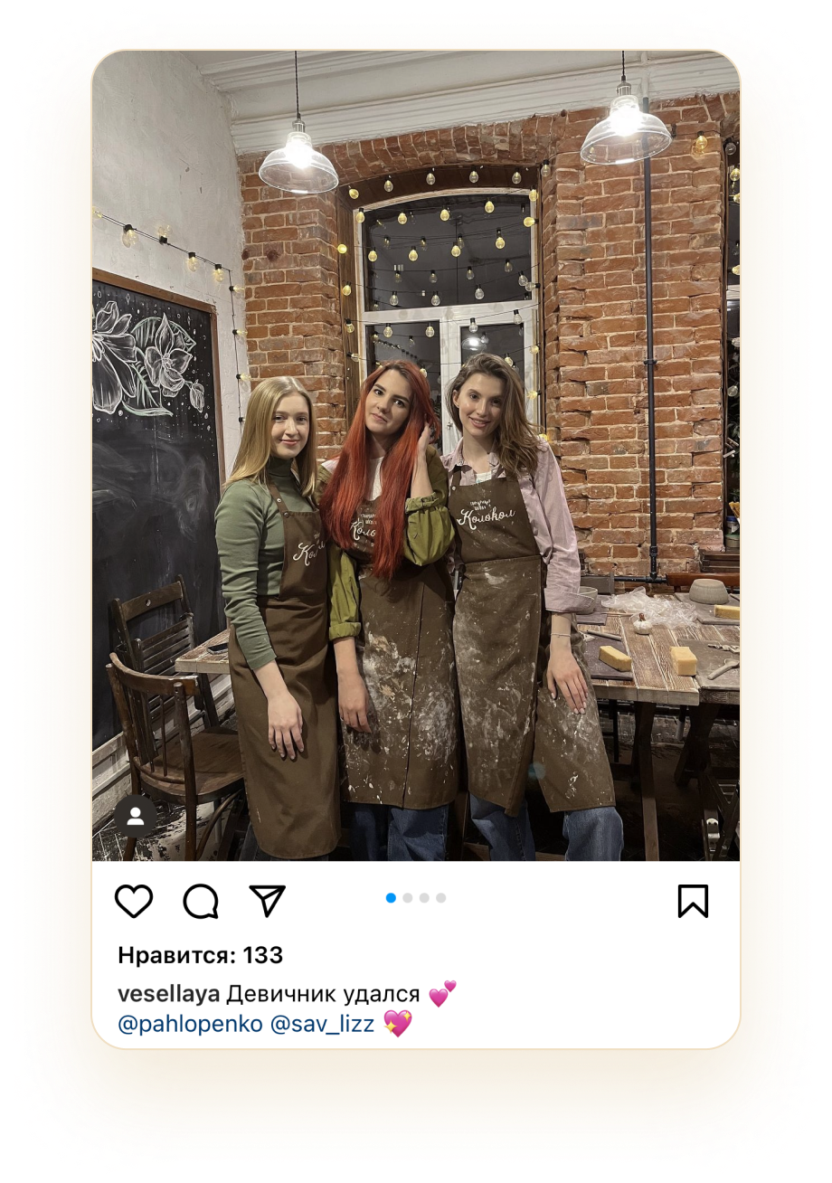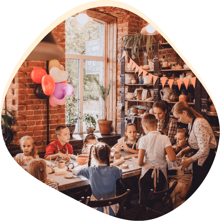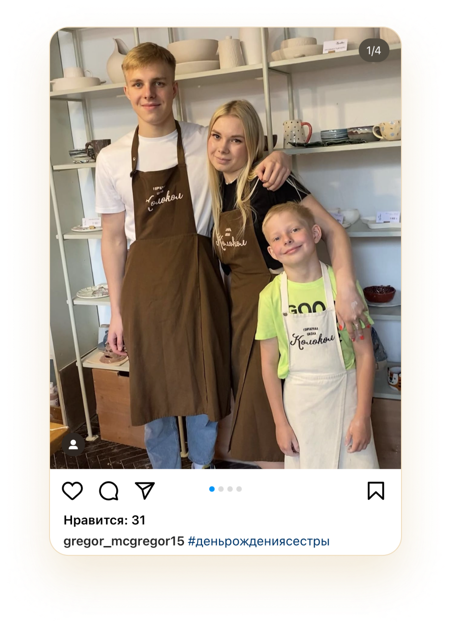 Создаёте все вместе кружки, тарелки или другие формы на гончарном круге или лепкой. Мастер уделяет внимание каждому.