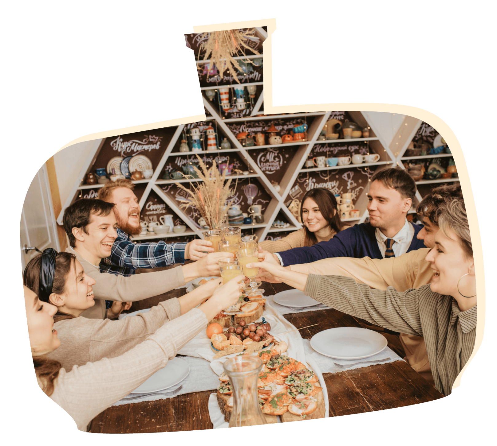 Поставим красивую посуду, украсим стол. Вы сможете принести свои угощения или мы организуем и вкусности тоже.