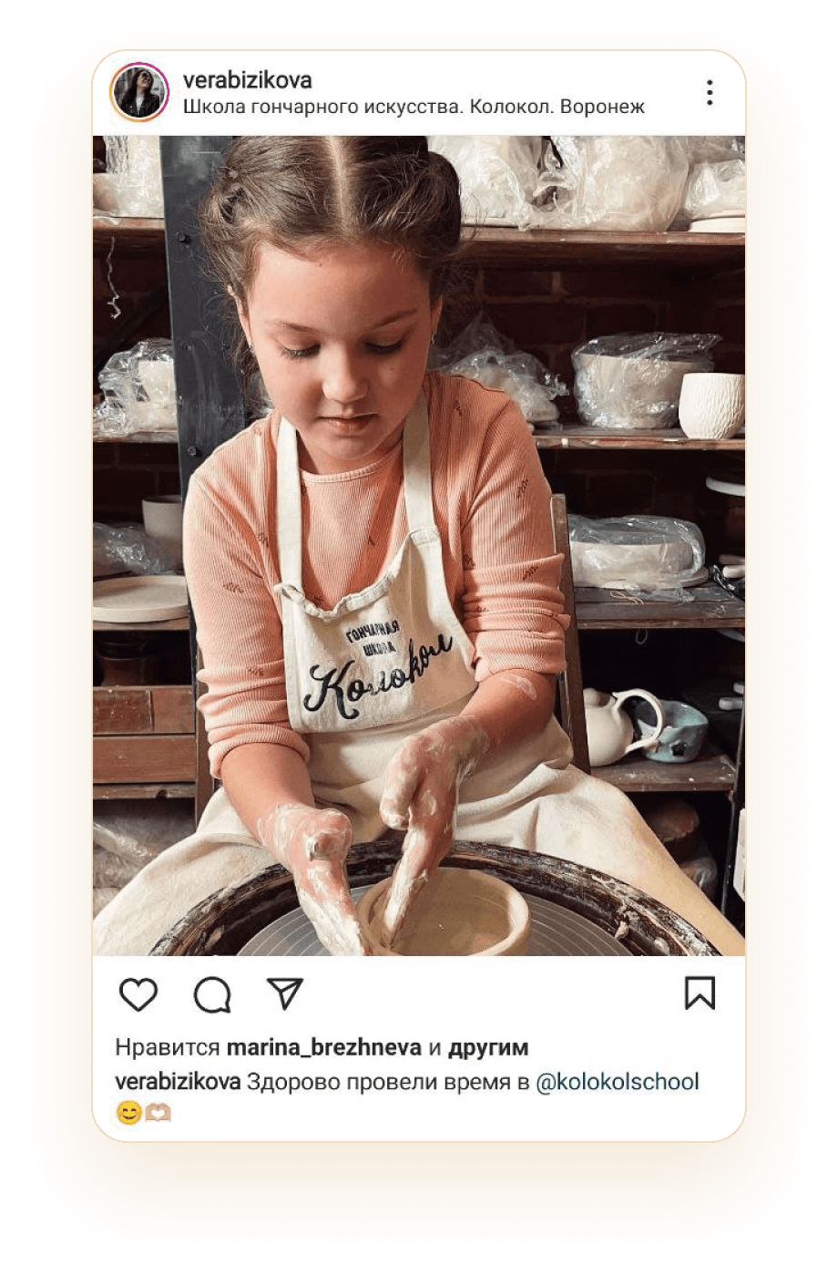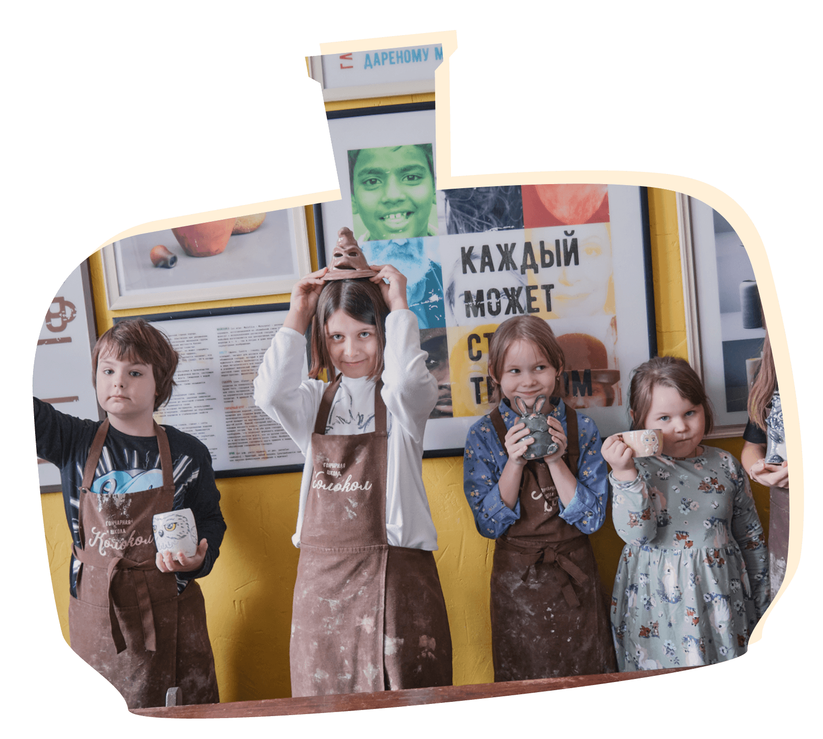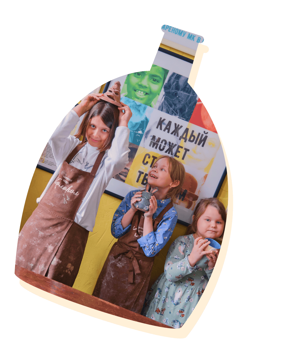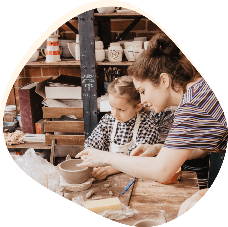 Создаёте все вместе кружки, тарелки или другие формы на гончарном круге или лепкой. Мастер уделяет внимание каждому.