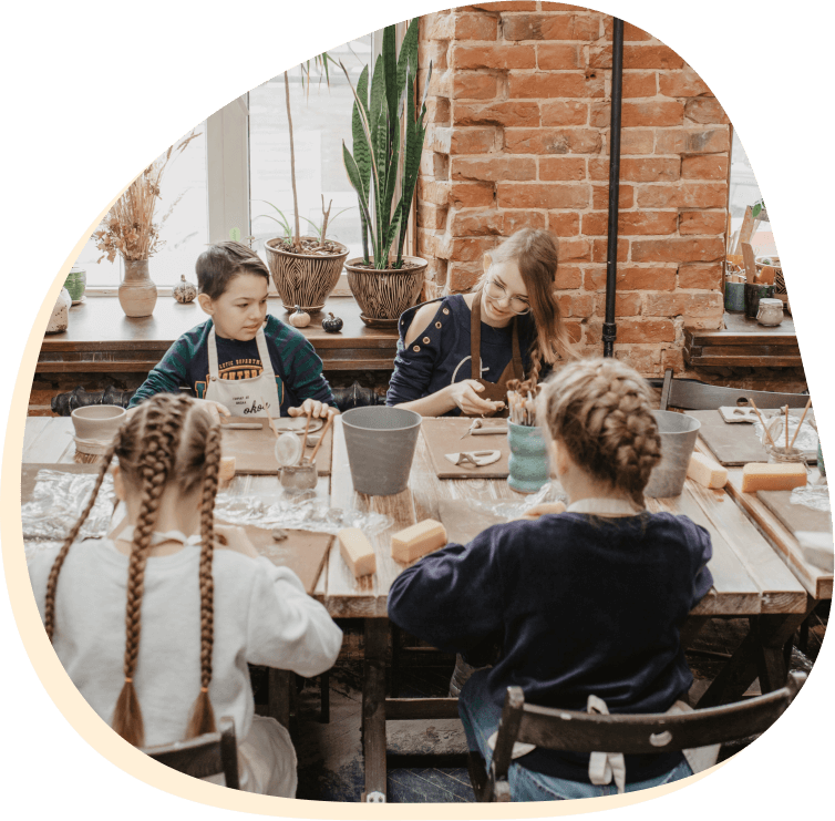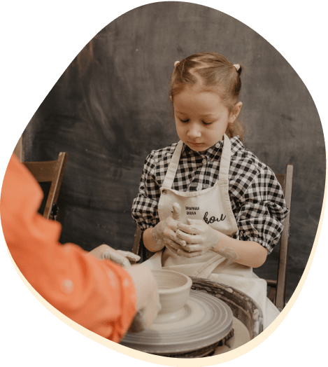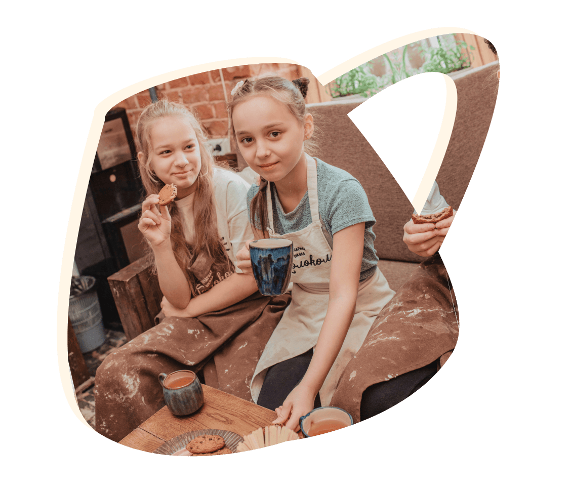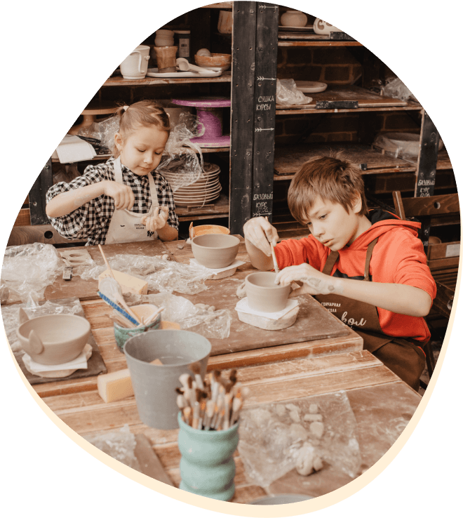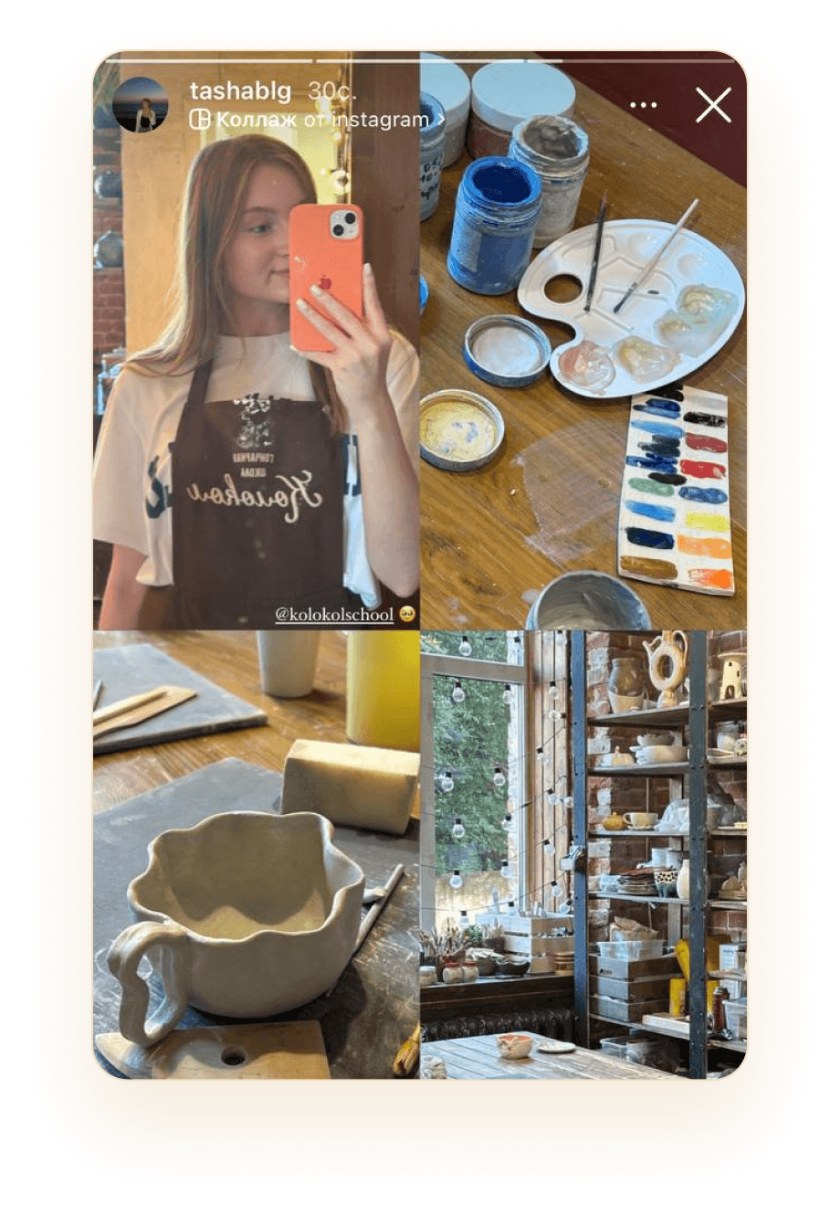 Создаёте все вместе кружки, тарелки или другие формы на гончарном круге или лепкой. Мастер уделяет внимание каждому.